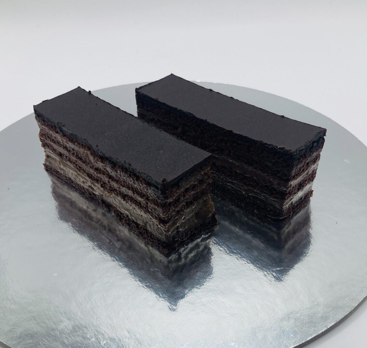 Omlós, csokoládés piskótalapok rumos, csokoládés pudingkrémmel, étcsokoládéval borítva