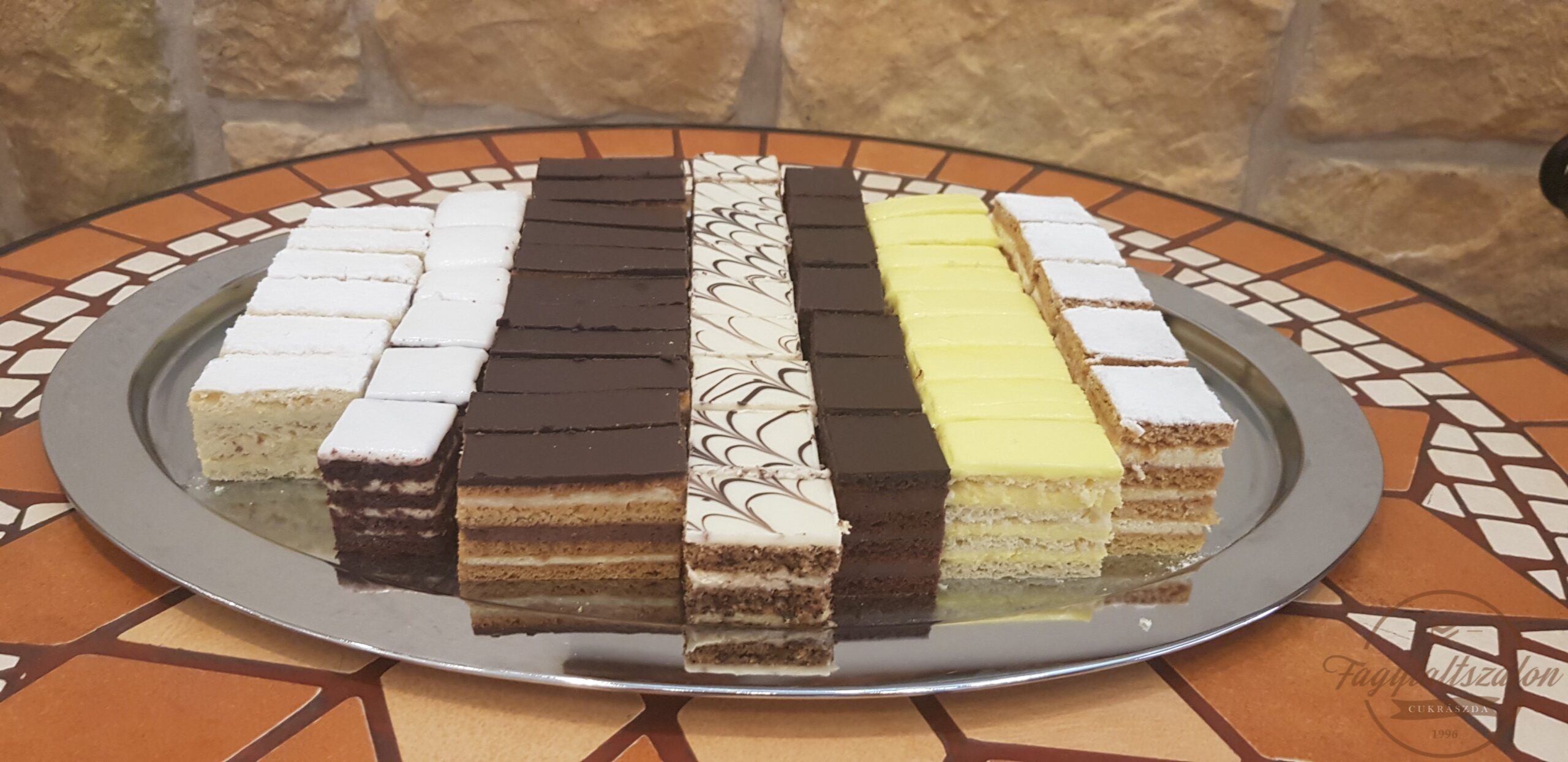 Készült: liszt, sütőmargarin (70% növényi olajok és zsírok, víz, emulgeálószerek, só, természetes aroma, tejsav, vitaminok), porcukor (őrölt kristálycukor, csomósodás gátló anyag), szódabikarbóna, méz (vegyes virágméz), tej, egész tojás, baracklekvár (almavelő, glükóz-fruktózszörp, zselésítőanyag (pektin), étkezési sav, tartósítószer (K-szorbát), aroma, antioxidáns (aszkorbinsav), színezék (kapszantin)), cukor, pudingpor (zsíros tejpor, kukoricakeményítő, zselésítőanyagok (karragén, nátrium-aginát), stabilizátor (difoszfátok), emulgálószer, színezék, aroma), krémmargarin (növényi olajok és zsírok (pálma, szója, napraforgó, repce, kókusz), emulgeálószerek, étkezési só, savanyúságot szabályozó anyag, tartósítószer, aromák, színezék (béta-karotin)), dekor porcukor (búzakeményítő, teljesen hidrogénezett növényi zsír (pálma), növényi olaj (repce), aroma), kakaópor (20-22% kakaóvaj tartalommal, kakaópor alkalizált, savanyúságot szabályozó anyagok (kálium-karbonátok, kálium-hidroxid), szalakáli, tej, citromhéj, citromlé, ehető ételfesték (citromsárga), citrom aroma (természetes aroma, ivóvíz, glükózszirup, módosított keményítő (E1422), savanyúságot szabályozó anyagok: citromsav, nátrium-citrátok, emulgálószer zsírsavak, mono- és digliceridjeinek citromsav – észterei, xanthan), fondant (cukor, glükózszirup, emulgálószerek, citromsav: E330), kakaós bevonómassza (cukor, teljes mértékben hidrogénezett növényi zsír (pálmamag), zsírszegény kakaópor (15%), emulgálószerek (lecitinek, E476), természetes aroma), szódabikarbóna, dió, rum, fahéj, darált mák felhasználásával.